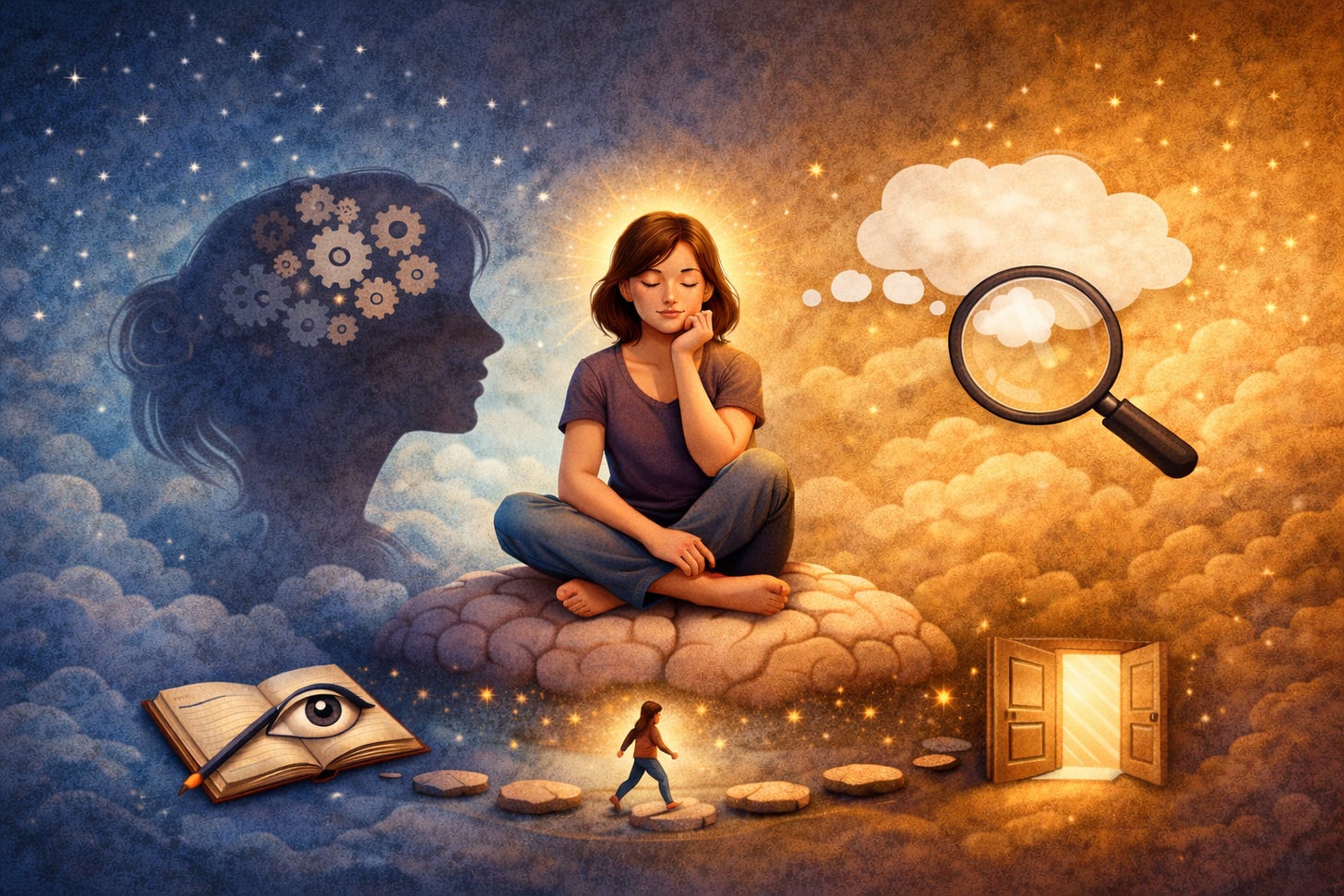 Metacogniția este gândirea despre gândire, observarea modului în care gândești și de ce. Este ca o pauză mică între impuls și reacție.